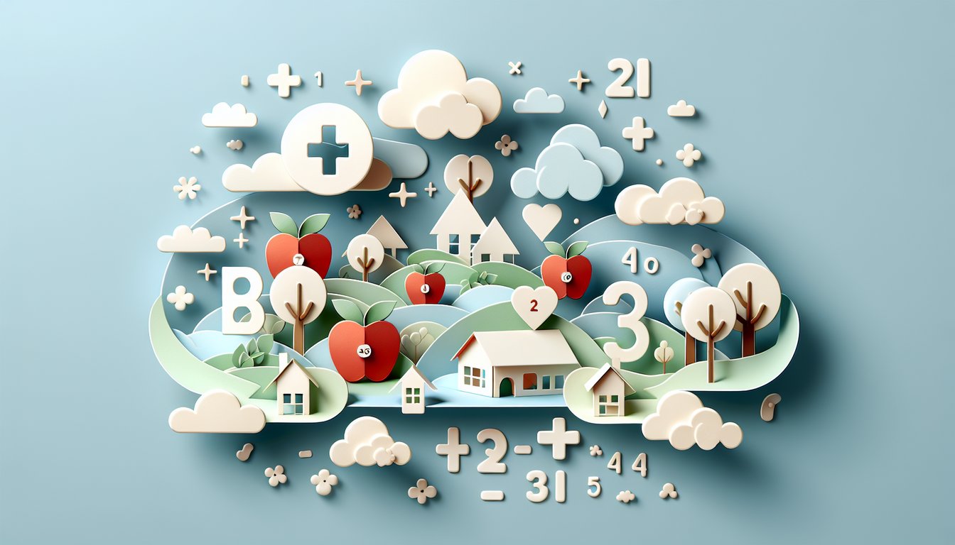 Simple addition follows the formula a + b = c, where two amounts combine into a larger whole. For instance, 2 + 3 = 5 can be visualized by drawing two apples and three apples, then counting all five together (U.S. Department of Education). Use the mnemonic "add to grow" to remind learners that numbers increase when we add.